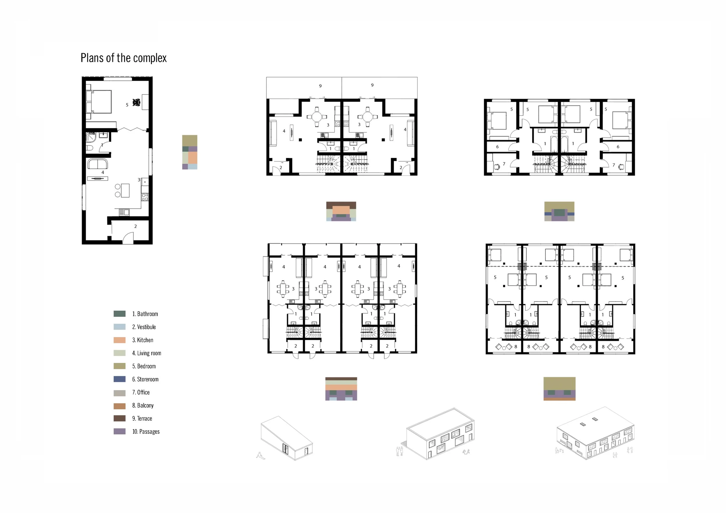 Accommohouse - the name comes from the word ‘accommodation’, this is a process during which ethnic groups adapt to each other's existence in a single space. In real life, it happens that we do not get along with a person, relying on the fact that we are different, but if you look inside this system, you can understand that we all, despite some differences, are able to get along with each other. This residential complex is designed to unite different types of individuals, each with their own personal space. Despite living in the same place, they have a different way of life, everyone experiences different emotions and feelings. In order to try to unite them, common areas are created, it is there that the residents will be able to collide, an invisible connection will begin to appear between them, which will lead to rapprochement. The house has a special shape where different types of personality can often collide wherever they go, which will lead to their connection with each other. All this ‘experiment’ leads to the fact that a person needs a person for his own development, since everyone has valuable, new information that can be passed on to another. All this increases the mind and intellect, forming a good connection from different, but at the same time the same people.