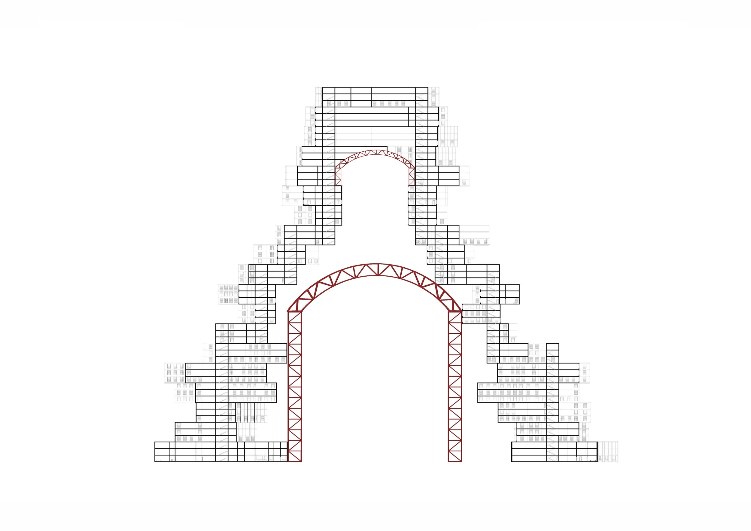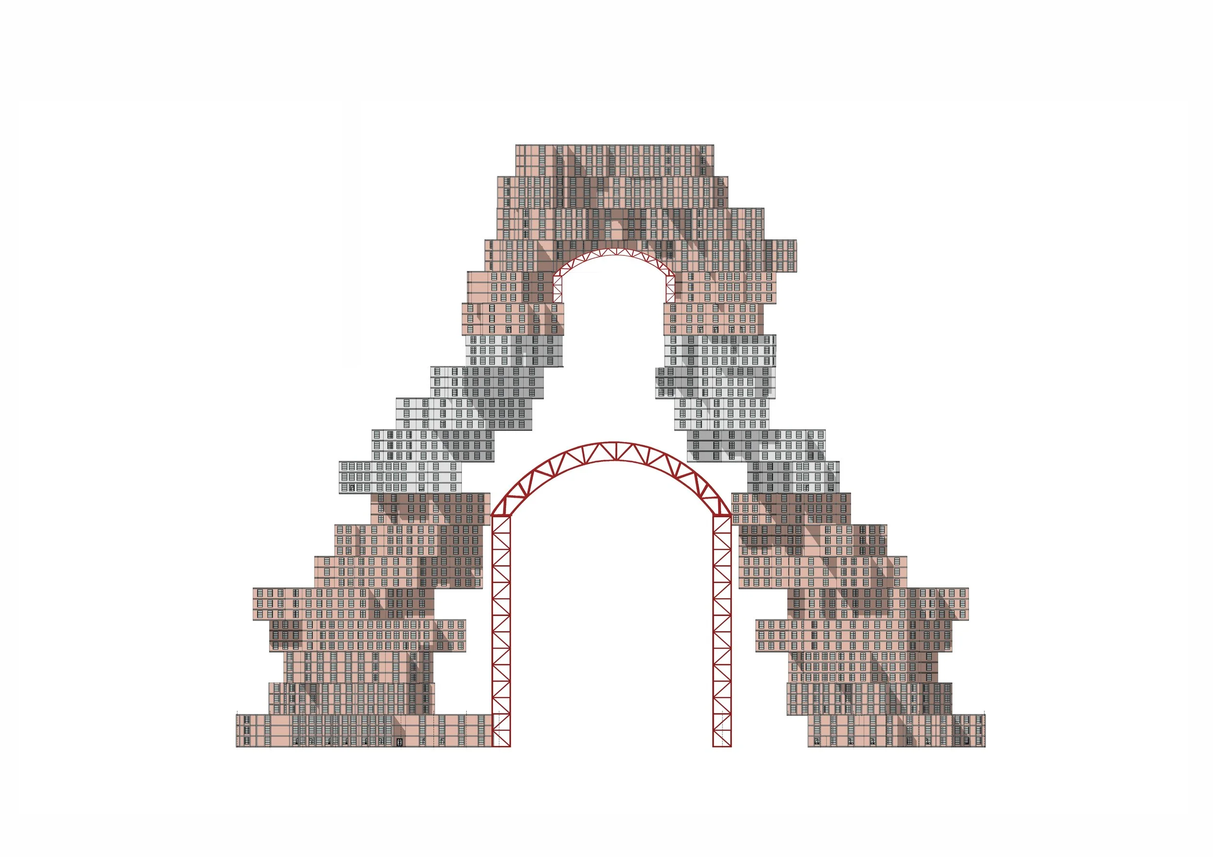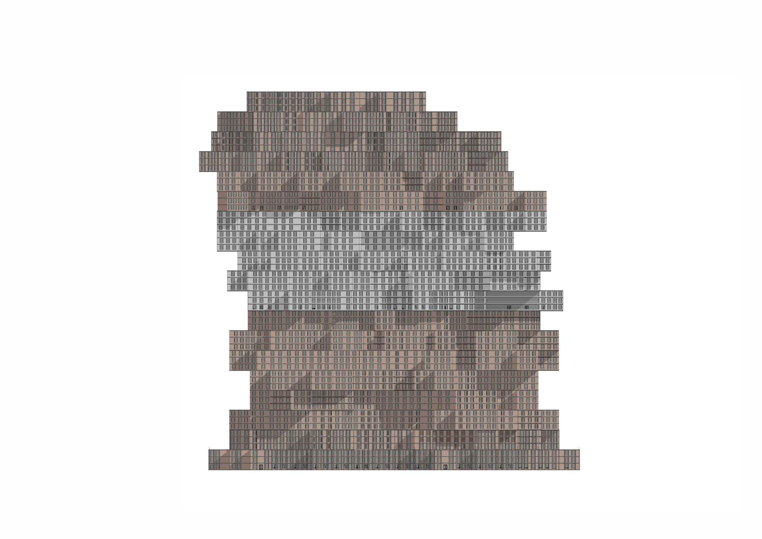 Outer layer: residential modules defining the building’s rhythmic silhouette.