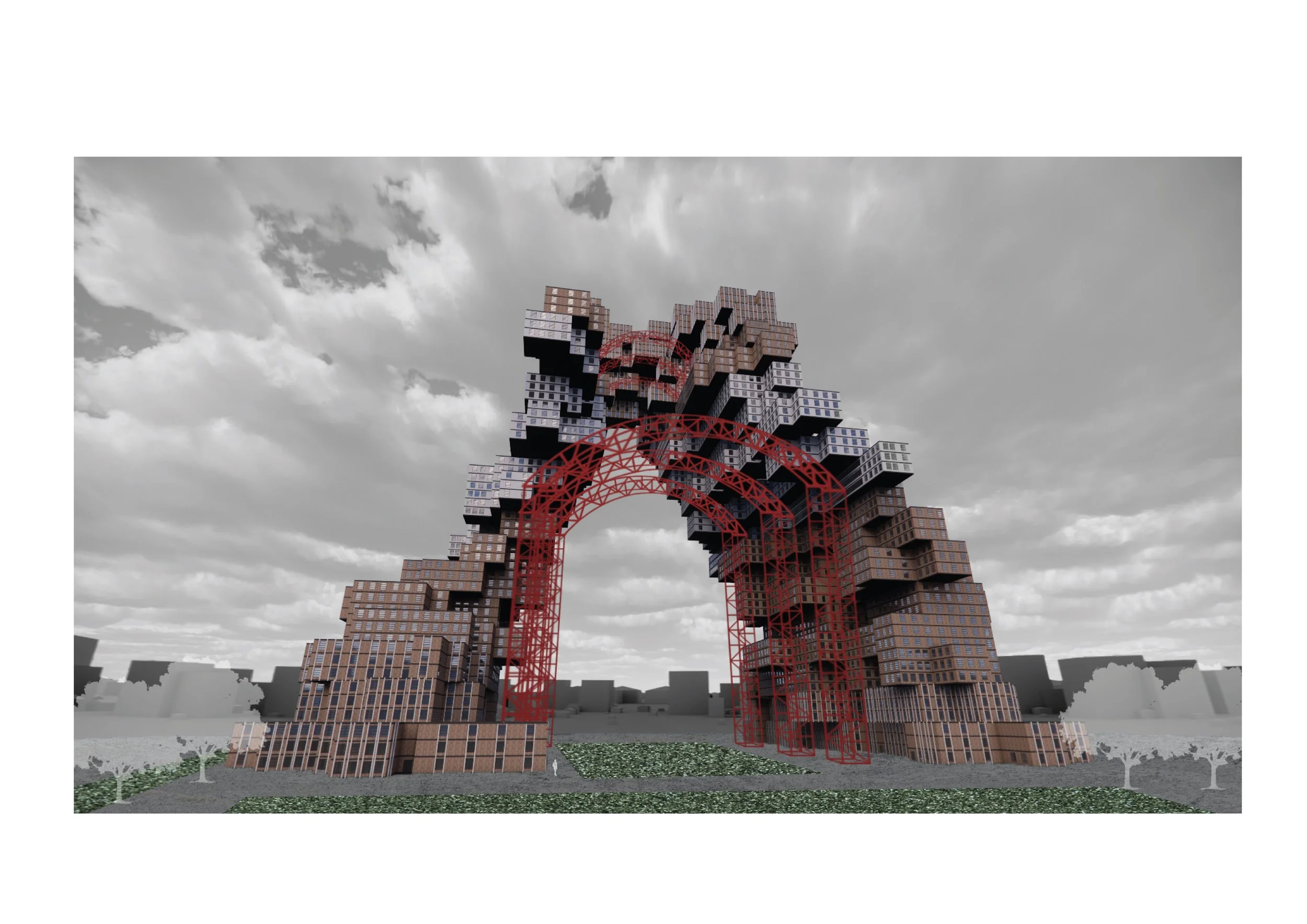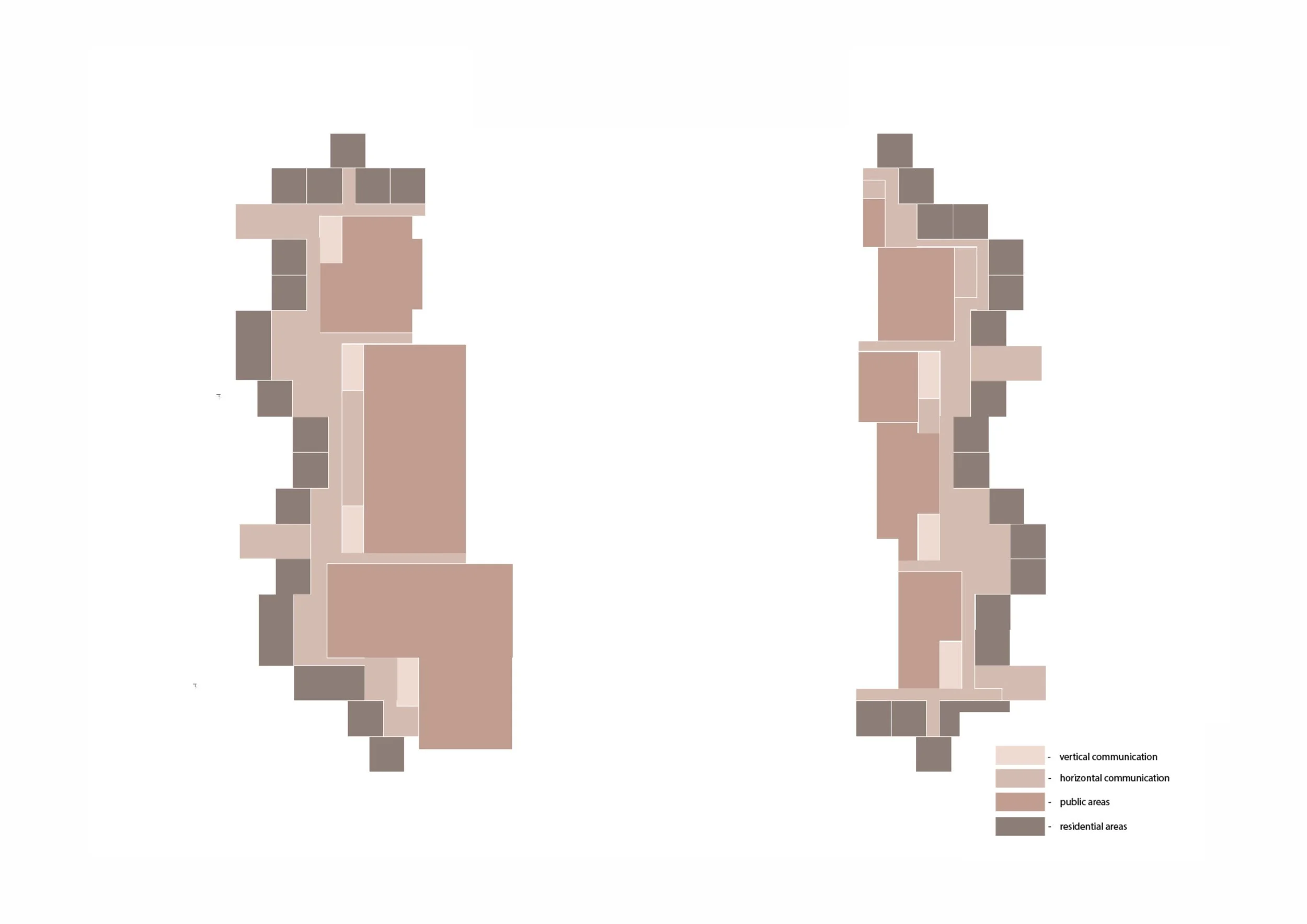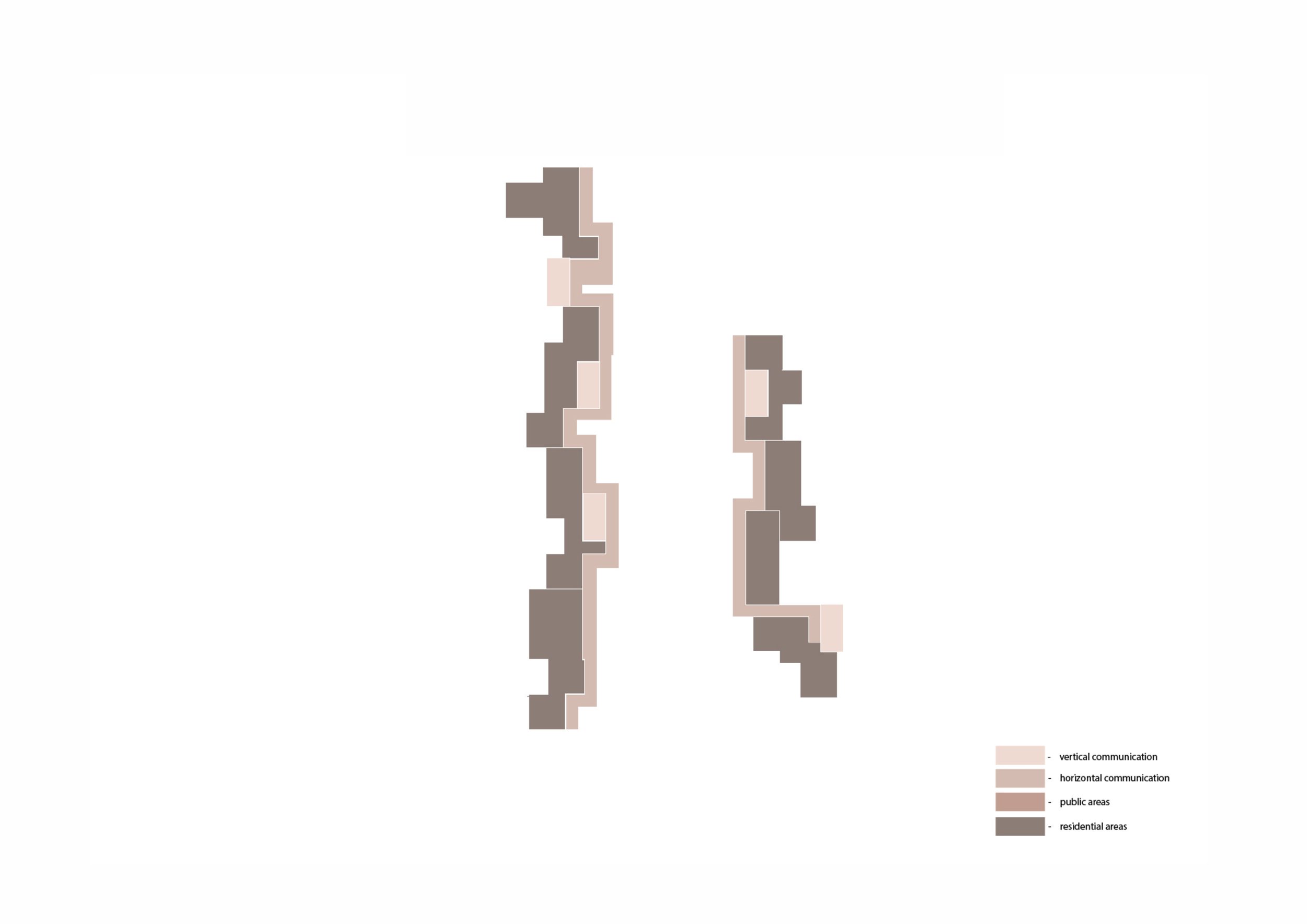 Outer layer: residential modules defining the building’s rhythmic silhouette.