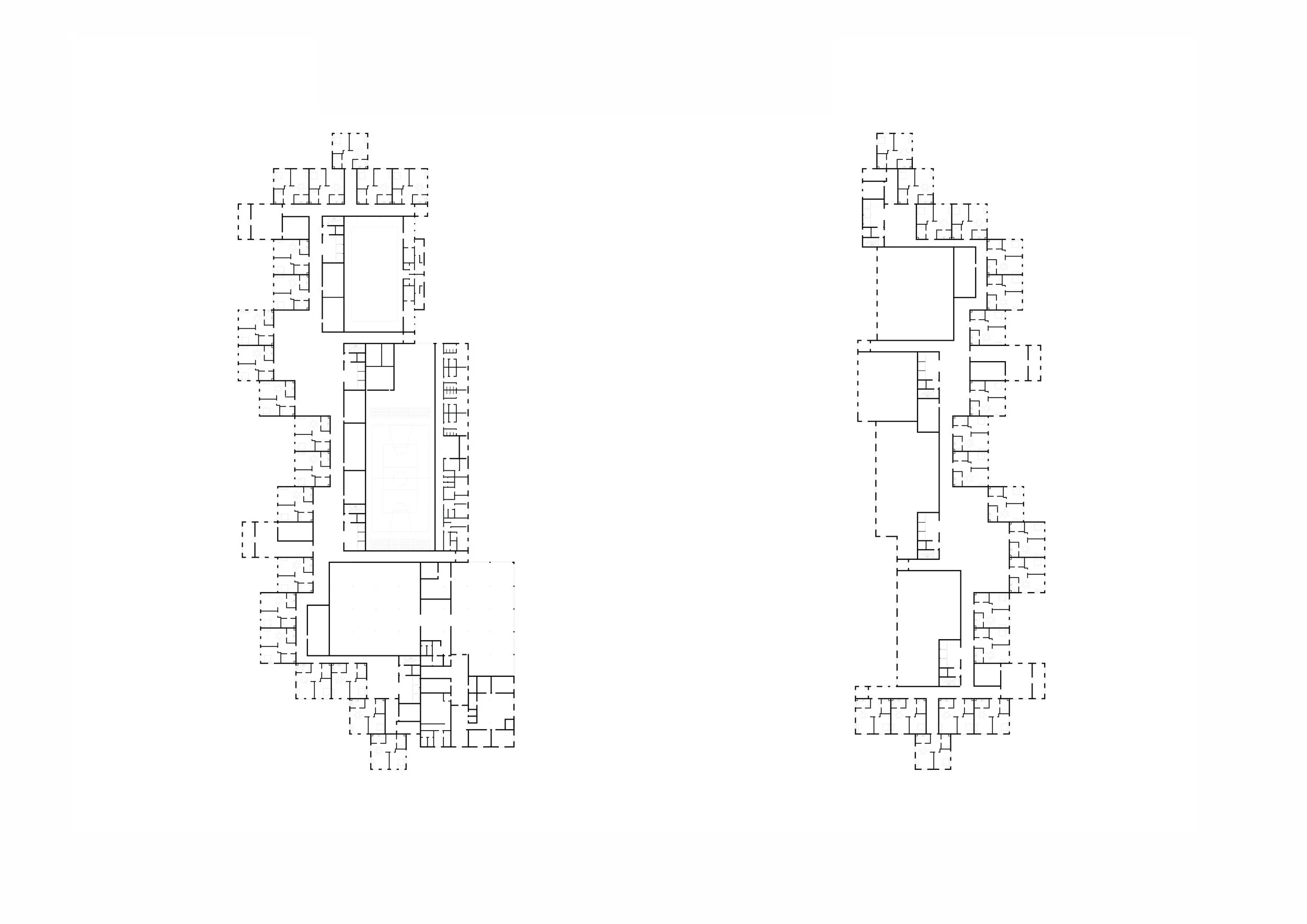 Inner layer: public functions (cafés, lecture halls, sports complexes, and shops) fostering a vibrant community environment.