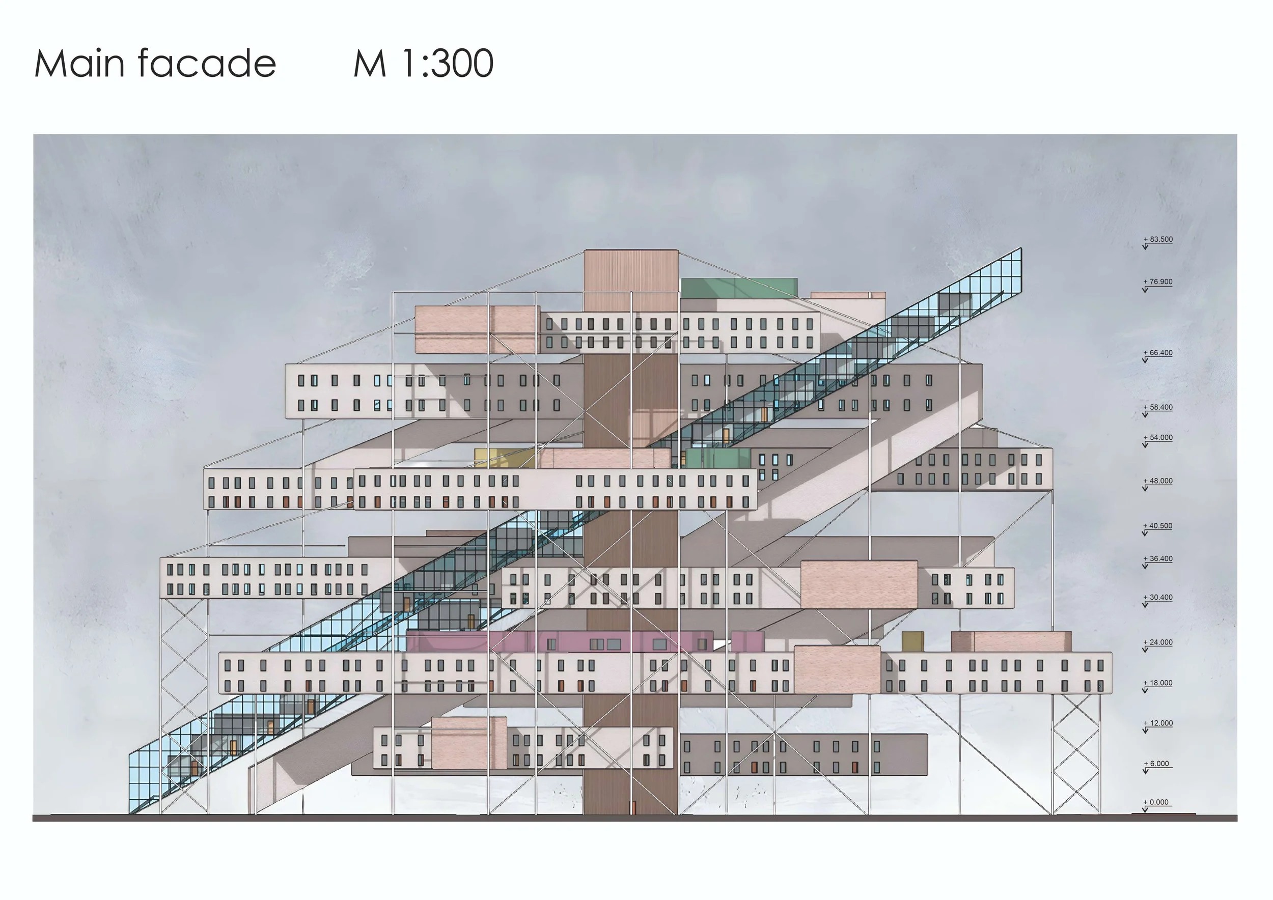 Verticum represents a paradigm shift in urban housing, proposing a vertical ecosystem where architecture functions as an integrated platform for living, social interaction, and creative activity. The project reinterprets urban development as an upward trajectory, replacing horizontal expansion with a multi‑tiered system that merges private residences and public spaces into a cohesive living environment.