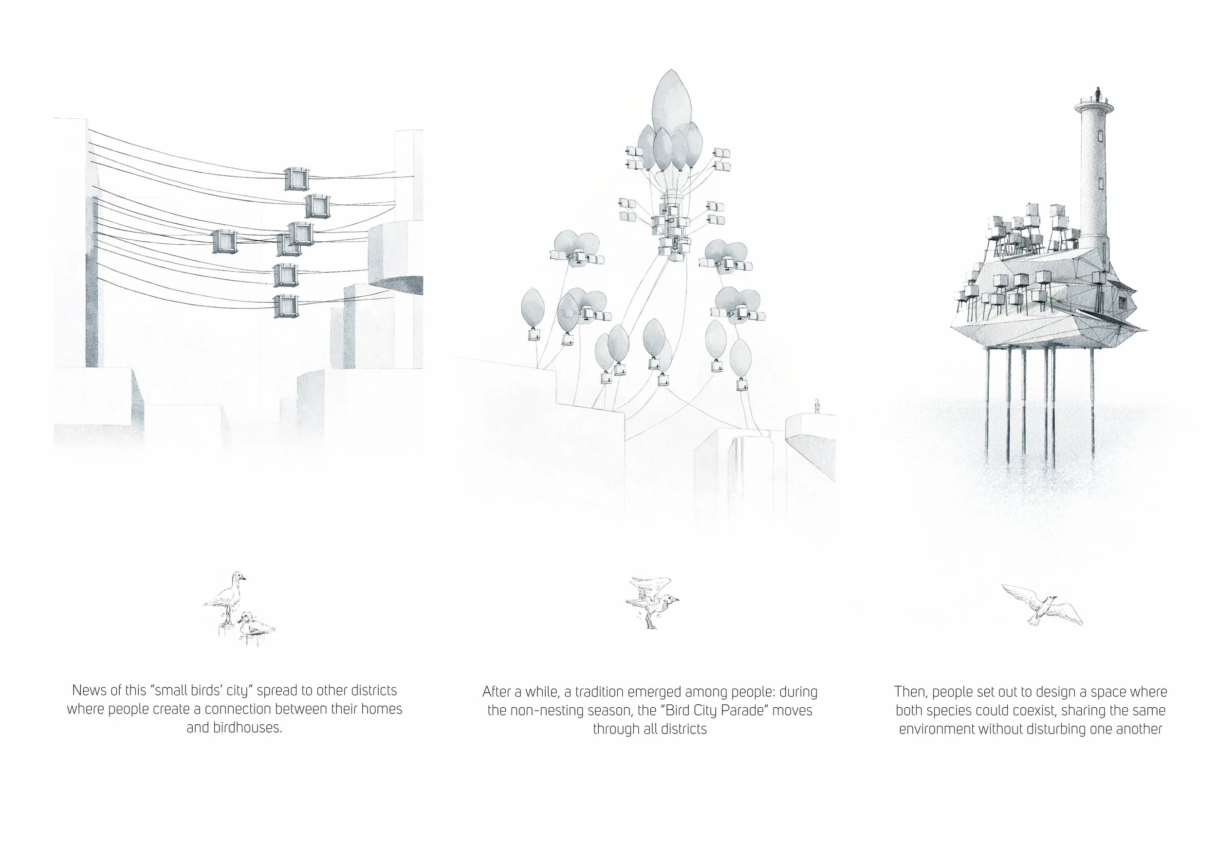 3. News of this "small birds' city" spread to other districts where people create a connection between their homes and birdhouses.