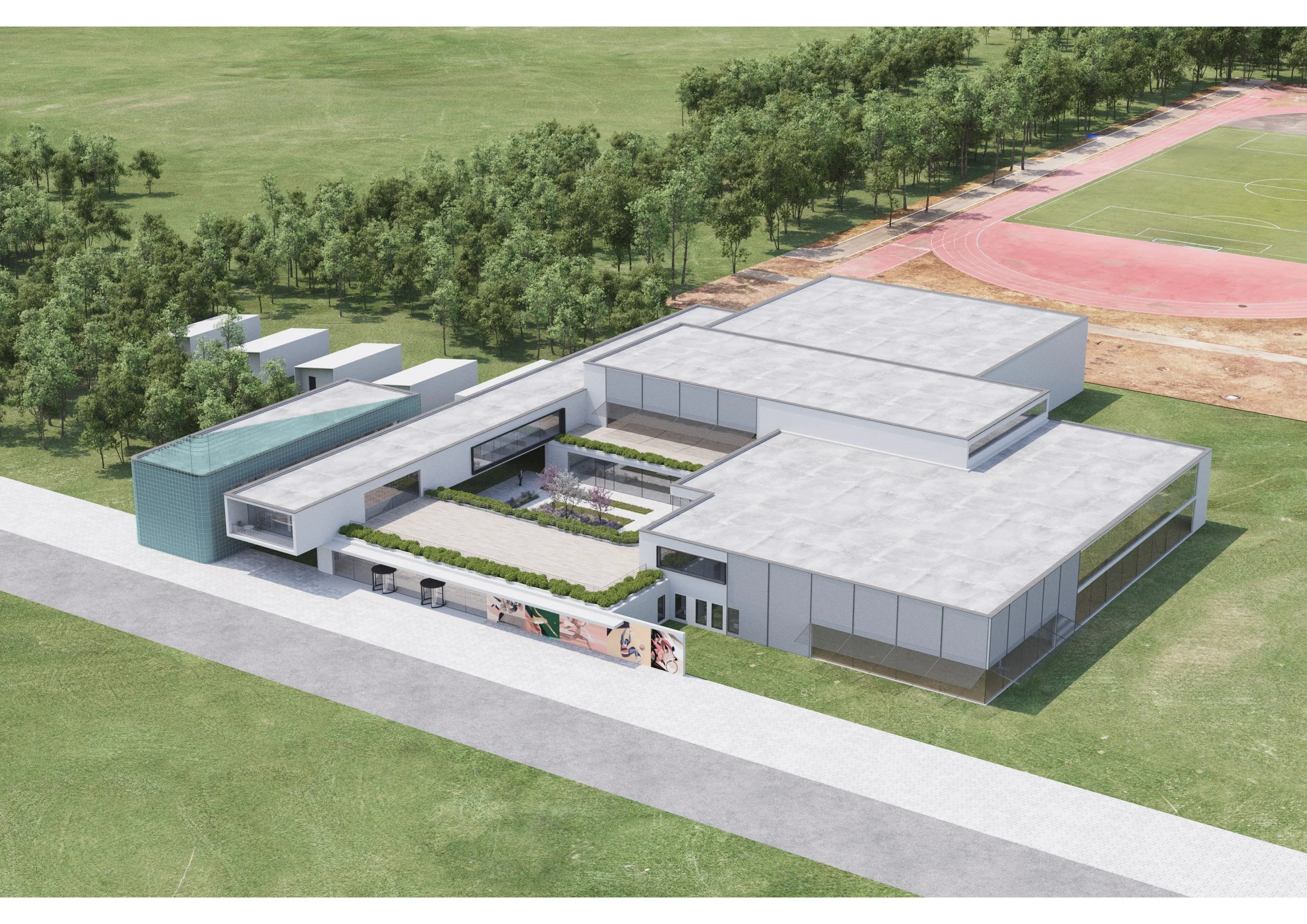 Special attention has been paid to creating a comfortable and inviting atmosphere. Natural light is maximized, and the landscaping of the site is harmoniously integrated into the surrounding environment. The project envisions the creation of dedicated zones for rest and relaxation — quiet corners with soft lighting and comfortable furniture where visitors can unwind after workouts or simply enjoy tranquility.